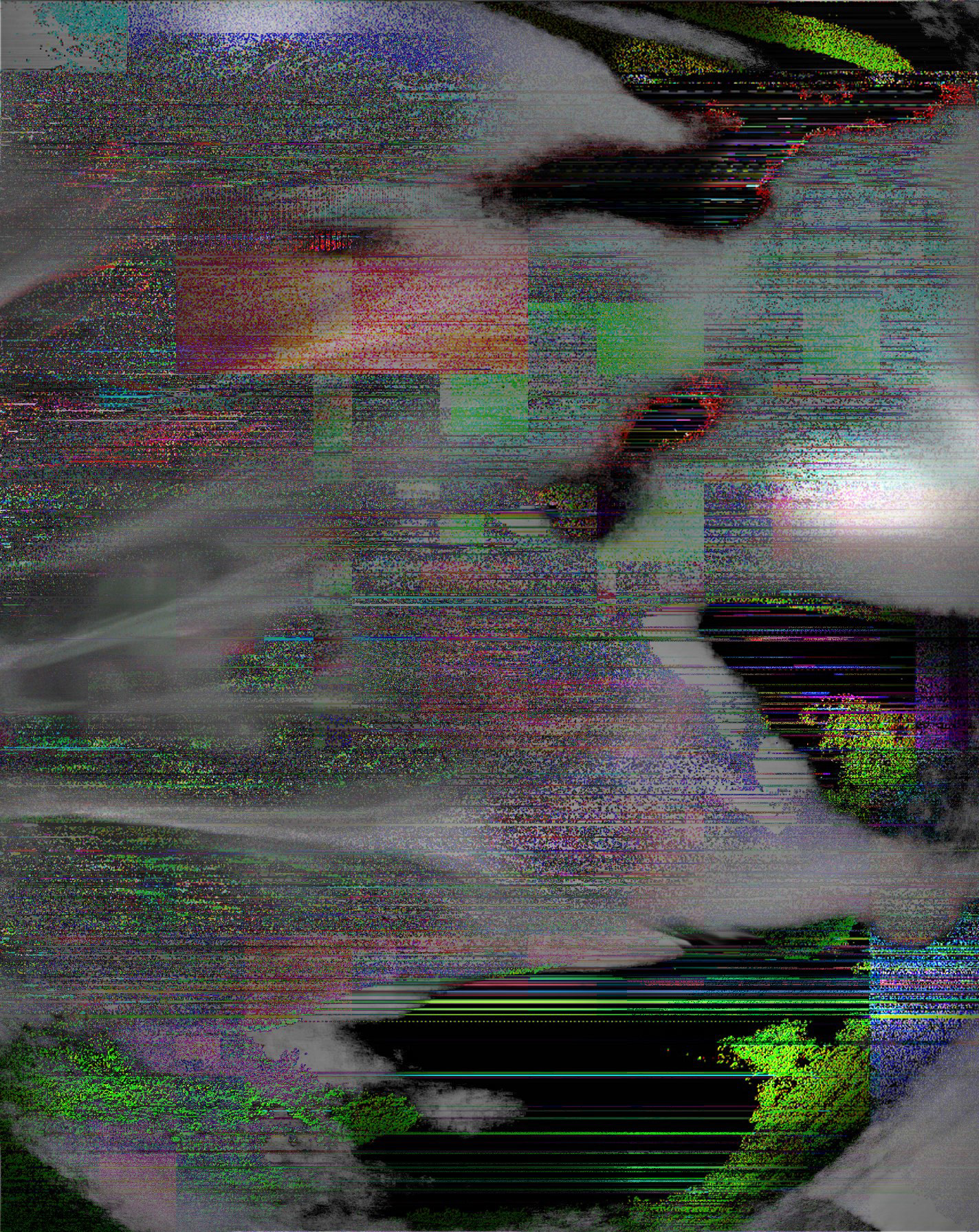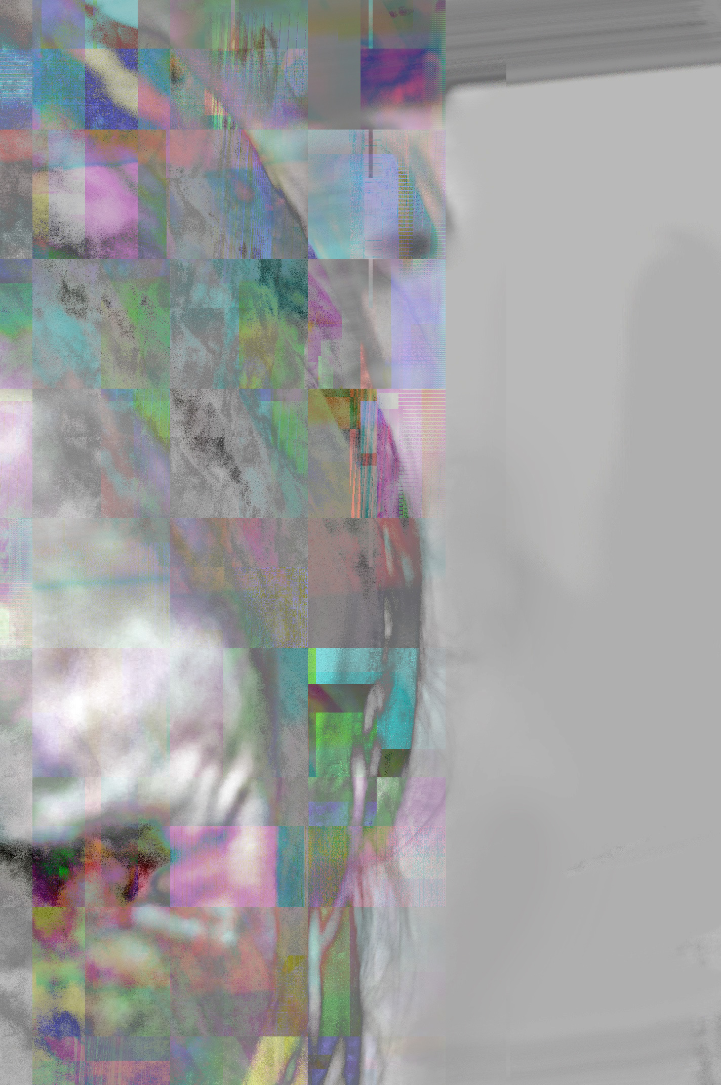 Cette série de remixes d’autoportraits, réalisée lors de mes premières expérimentations avec le glitch en 2015, traite l’erreur à la fois comme matériau et comme méthode d’auto-perception : faire surgir, au cœur de l’algorithme, l’imprévu d’un soi multiple et désintégré.