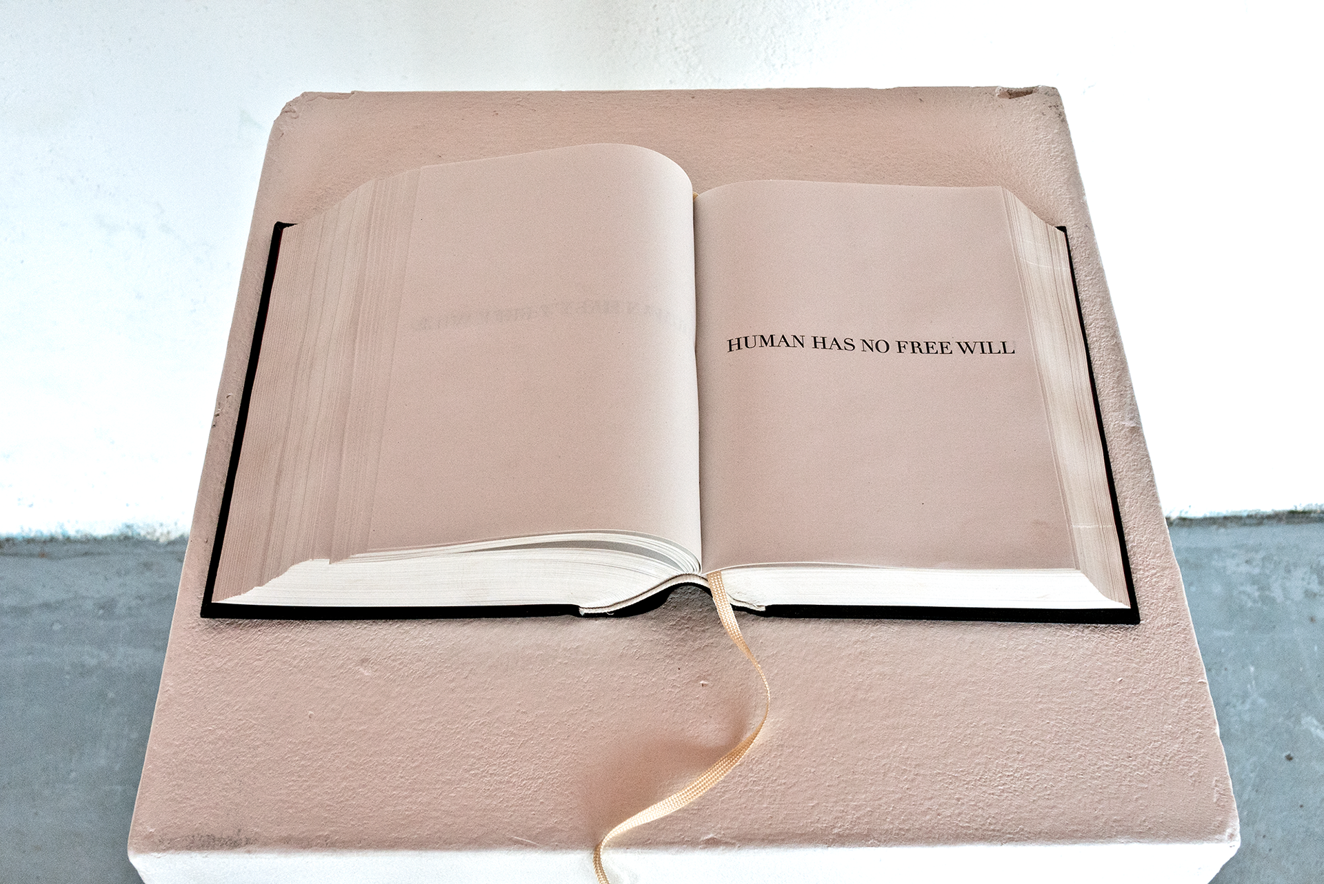 Humans Have No Free Will (2012-2015), projet multidimensionnel qui satirise la perte du libre arbitre à l’ère technologique et ses implications sur l’identité humaine, s’inspirant de références historiques et de la sous-culture populaire.