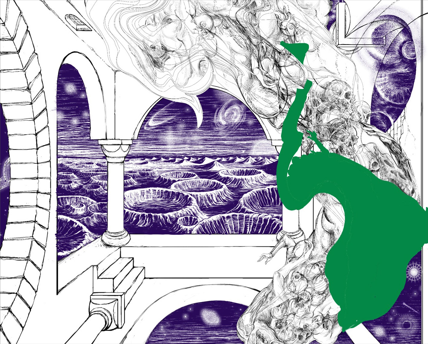 Esquisse numérique #1, recherche visuelle du projet. © Dali Wu 2019.